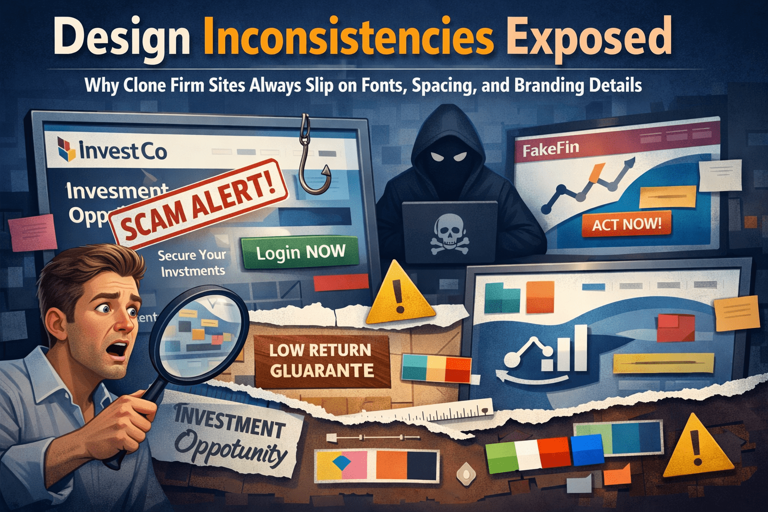 When fraudsters build a clone firm website, their primary goal is speed. They need a convincing replica of a legitimate financial firm's online presence, and they need it quickly before the scam is detected. That urgency leaves visible traces — and those traces often appear in the most overlooked corners of web design: typography, spacing, and brand consistency.